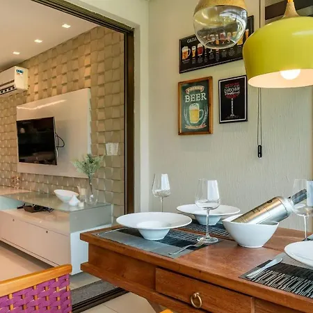 Apt Luxo-Varand Gourmet-Pisc E Academia-Sh057 villa comprises a kitchen with a fridge, a toaster, and an oven. Guararapes airport is 95 km away from the Praia dos Carneiros accommodation.